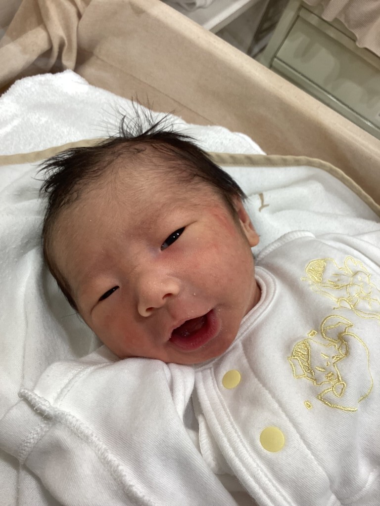 順調にお産が進み、呼吸法も最後の息みも本当にお上手でした!パパも立ち会えて良かったですね。ご出産おめでとうございます!
