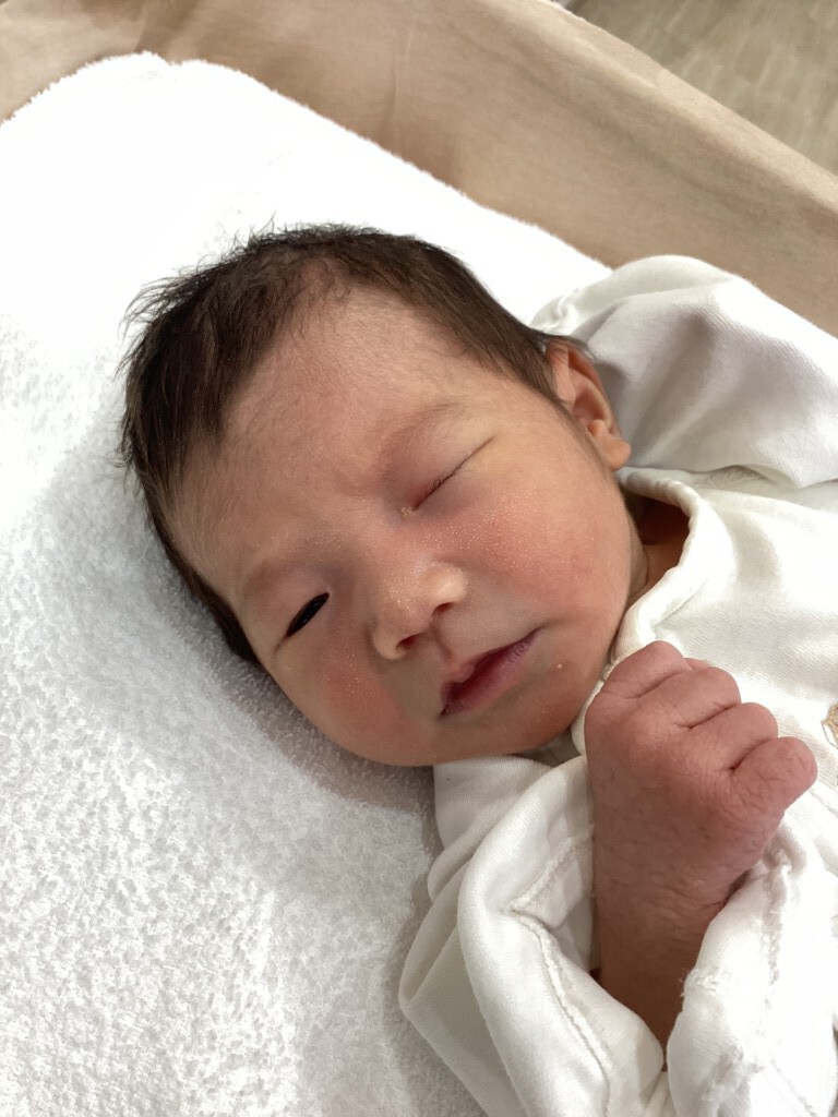 お家で頑張ってくれて病院についてすぐ初声を聴かせてくれましたね。これからパパと赤ちゃんと3人の生活楽しんで下さい。ご出産おめでとうございます。