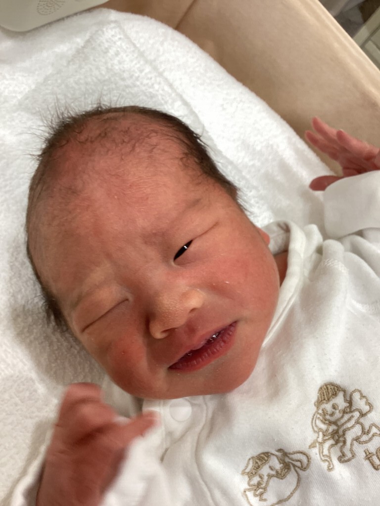 ご出産おめでとうございます。とてもスムーズなお産で、パパと一緒によく頑張られましたね。お疲れ様でした。これからの新生活楽しめますように。赤ちゃんとの健やかな成長祈っています。