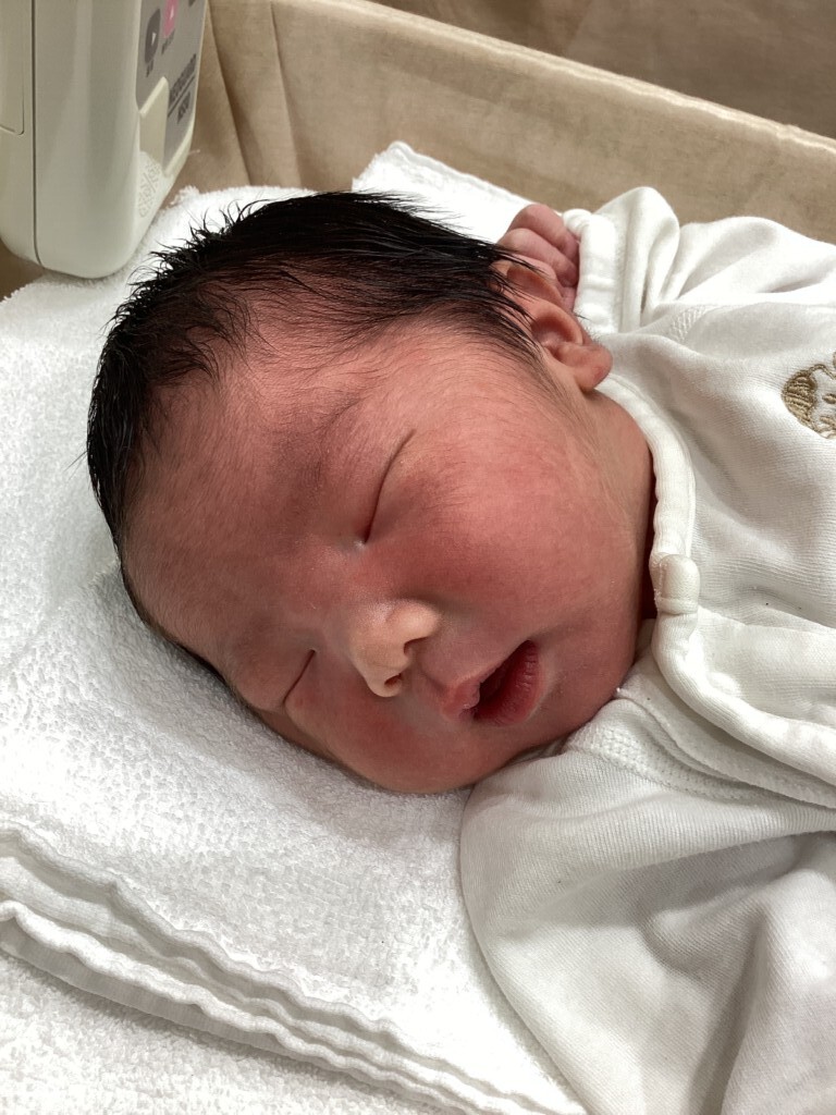 ご出産おめでとうございます。パパの到着を待っていたかの様に、パパが来てからグングン進みましたね。まんまる大きな赤ちゃんが元気いっぱいに産声あげてくれて、本当に良かったです。今日から家族4人。笑顔あふれる毎日となりますように。
