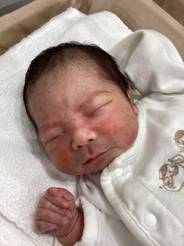 ご出産おめでとうございます。痛みがつきだしてからも、ゆっくりペースのお産でしたが、パパのサポートもあり、上手な呼吸で乗りこえる事ができ、赤ちゃんも元気いっぱいで誕生してきてくれましたね。ママの身体もいたわりつつ、子育て楽しんで下さいね。