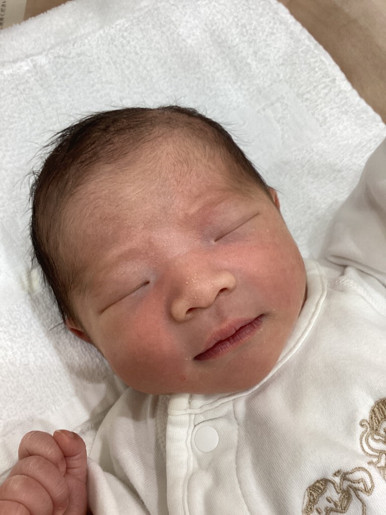 ご出産おめでとうございます。長い長い陣痛でしたが、赤ちゃんの為に頑張ってくれましたね。ママの頑張りと、パパのサポートのお陰で元気いっぱいに、赤ちゃんが誕生してくれ、本当に良かったです。お身体いたわりつつ、これからの子育て、笑顔で楽しんで下さい。すくすく大きくなぁれ。