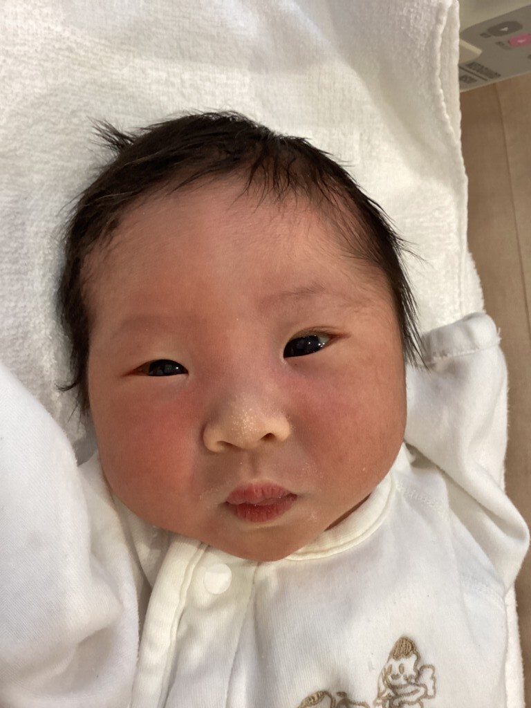 ご出産おめでとうございます。陣痛とても辛かったと思いますが、最後まで落ち着いて呼吸法も、いきみ方も上手に出来ていました。赤ちゃんも元気に泣いてくれて安心しましたね。赤ちゃんとの新しい生活楽しんで下さい!