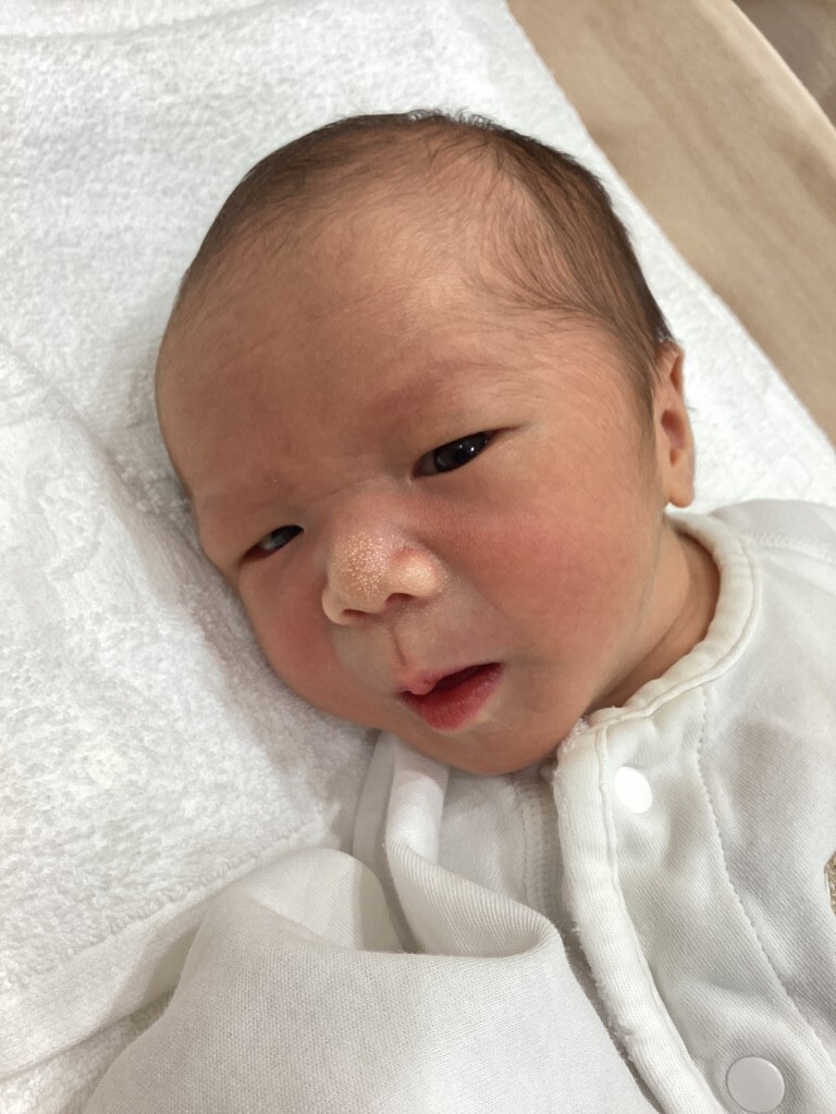 とっても勤勉ななママ、パパの明るい笑顔に支えられて、とっても安産でお産みになりました。元気に泣く男の子です!新しい家族が増えて賑やかになりますね。身体も休めながら育児楽しんで下さいね。ご出産おめでとうございます!