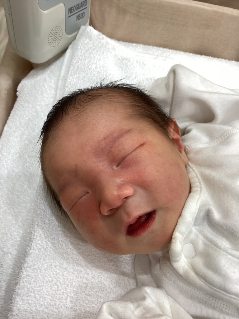 分娩台乗る時も、乗ってからもとっても頑張りました。ママの呼吸法が上手だったおかげで、赤ちゃんも元気でした。パパのサポートも心強かったですね。満開の桜とともに、新生活親子3人で楽しんで下さい。ご出産おめでとうございます。